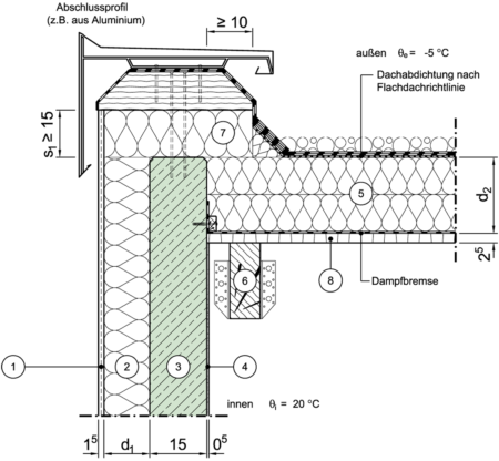 | 5 | Dicke der Dämmung des obersten Gebäudeabschlusses | d | m |