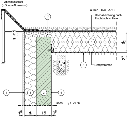| 5 | Dicke der Dämmung des obersten Gebäudeabschlusses | d | m |