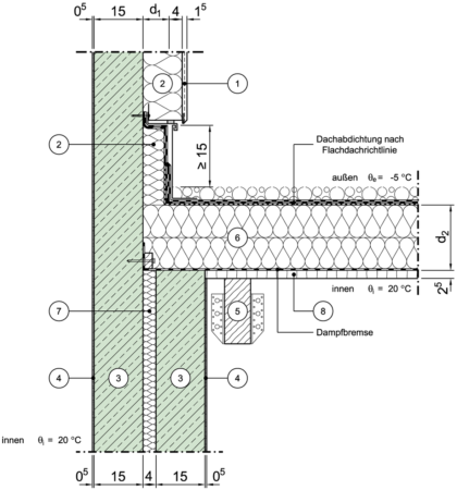 | 6 | Dicke der Dämmung des obersten Gebäudeabschlusses | d | m |