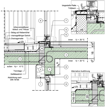 barrierefreier Balkonanschluss, Variante 1, Fenster/Tür in beiden Geschossen, Fensterlage in Wandebene