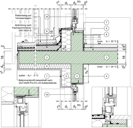 | 9 | Dicke der Dämmung ober- bzw. unterseitig des Balkons | d | m |