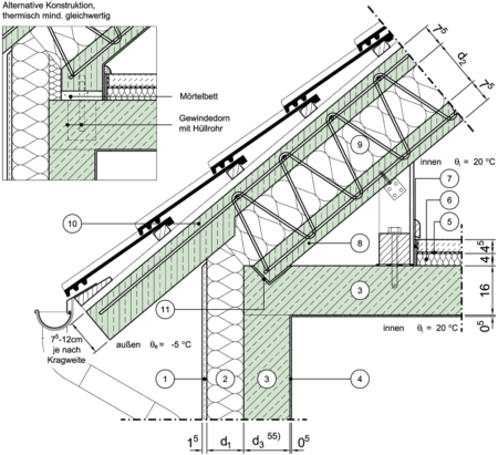 zu beheiztem Dachraum, Massivdach, Zweischaliges Normalbetonfertigteil (Syspro), Wandebene
