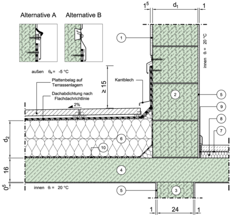 Loggien, Erker, Terrassen, Durchfahrten, Auskragendes Geschoss - unterer Anschluss an aufgehende Wand