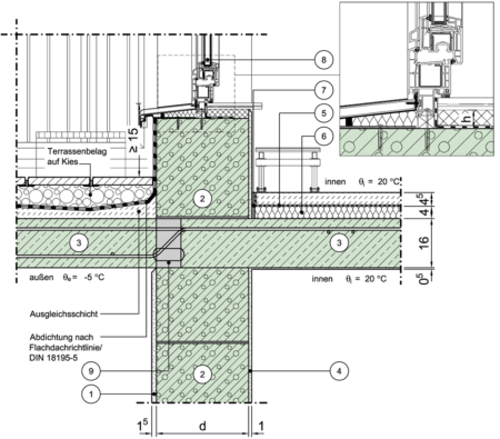 | 2 | Dicke der tragenden Schicht der Außenwand | d | m |