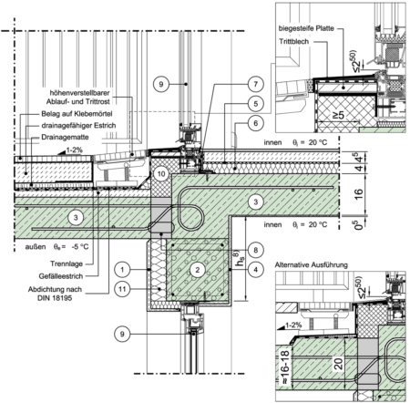 barrierefreier Balkonanschluss, Variante 1, Fenster/Tür in beiden Geschossen, zentrische Fensterlage