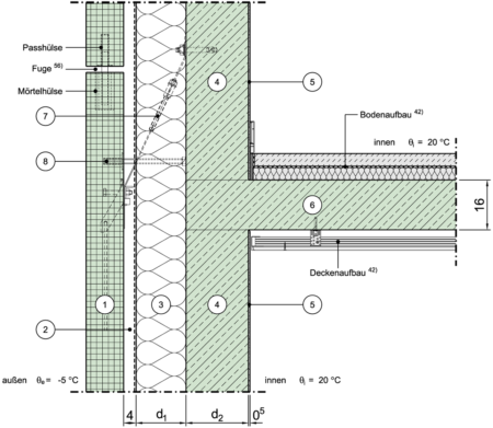 | 4 | Dicke der tragenden Schicht der Außenwand | d | m |