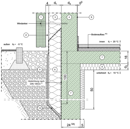 Im Sockelbereich an unbeheizten Keller, außenseitig gedämmt
