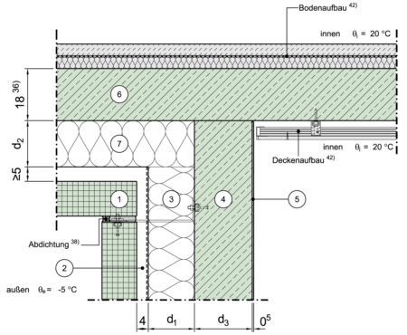 | 7 | Wärmeleitfähigkeit der Dämmung von Decken nach unten gegen Außenluft | λ | W/(mK) |