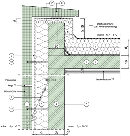 | 8 | Dicke der Dämmung des obersten Gebäudeabschlusses | d | m |