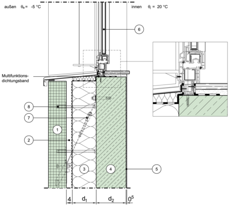 | 4 | Dicke der tragenden Schicht der Außenwand | d | m |