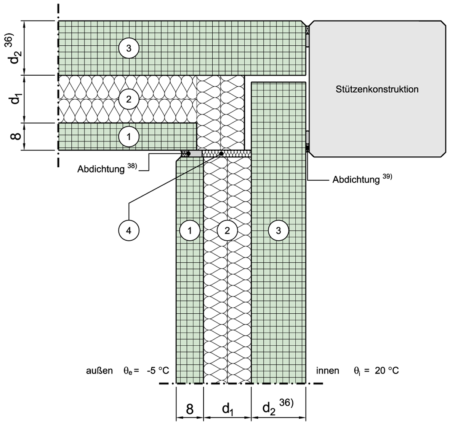 | 3 | Dicke der tragenden Schicht der Außenwand | d | m |