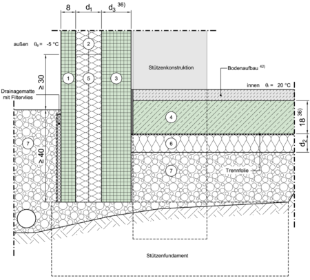 Dicke der Dämmung von Decken gegen Erdreich (Bodenplatten) |