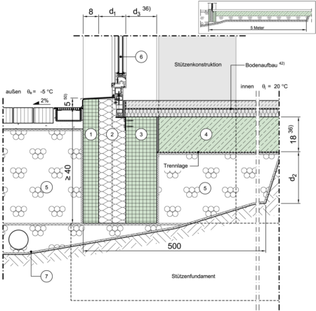 | 5 | Dicke der Dämmung von Decken gegen Erdreich (Bodenplatten) | d | m |
