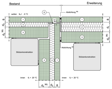 | 4 | Dicke der Dämmschicht der Außenwand des Bestandes | d | m |