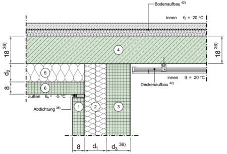 | 5 | Wärmeleitfähigkeit der Dämmung von Decken nach unten gegen Außenluft | λ | W/(mK) |