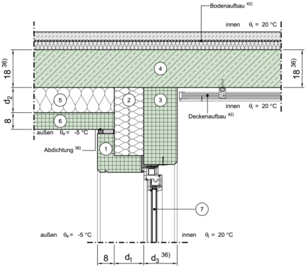 | 5 | Wärmeleitfähigkeit der Dämmung von Decken nach unten gegen Außenluft | λ | W/(mK) |