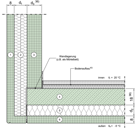 | 2 | Dicke der Dämmschicht der Außenwand | d | m |