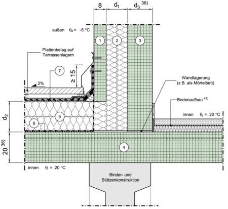 Loggien, Erker, Terrassen, Durchfahrten, Auskragendes Geschoss - unterer Anschluss an aufgehende Wand