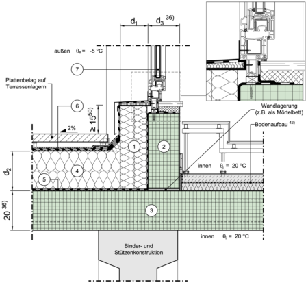 Loggien, Erker, Terrassen, Durchfahrten, Auskragendes Geschoss - unterer Anschluss an aufgehende Wand