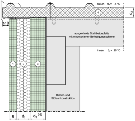 | 3 | Dicke der tragenden Schicht der Außenwand | d | m |