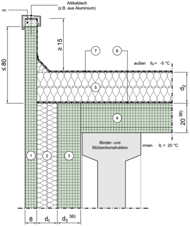 Hohlplattendecke mit Dämmung und Abdichtung, Vorsatzschicht als Attika, Ortgang