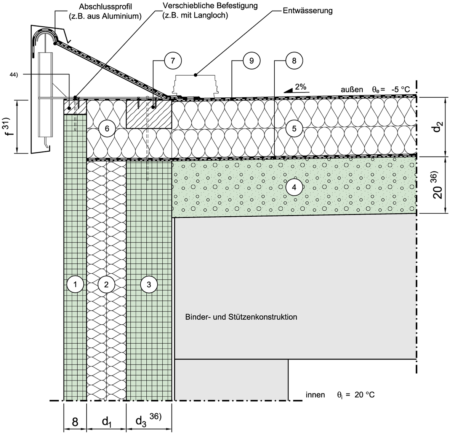 Porenbetondach mit Dämmung und Abdichtung,Traufe mit Abschlußprofil