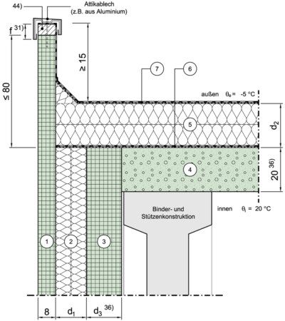 | 5 | Dicke der Dämmung des obersten Gebäudeabschlusses | d | m |
