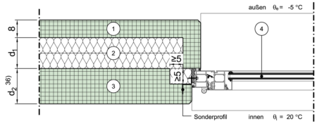 | 3 | Dicke der tragenden Schicht der Außenwand | d | m |