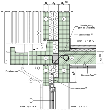 | 3 | Dicke der tragenden Schicht der Außenwand | d | m |