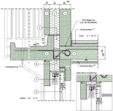 | 3 | Dicke der tragenden Schicht der Außenwand | d | m |