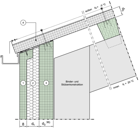 | 3 | Dicke der tragenden Schicht der Außenwand | d | m |