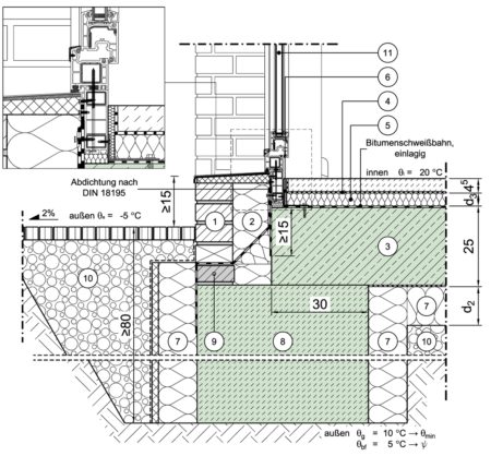 Mit Streifenfundament, perimetergedämmt, Streifenfundament beidseitig gedämmt, Fenster/Tür in Wandebene