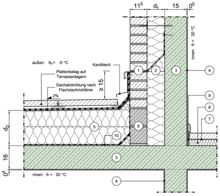 Loggien, Erker, Terrassen, Durchfahrten, Auskragendes Geschoss - unterer Anschluss an aufgehende Wand