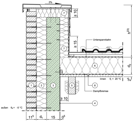 | 2 | Dicke der Dämmschicht der Außenwand | d | m |